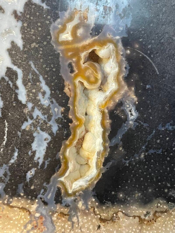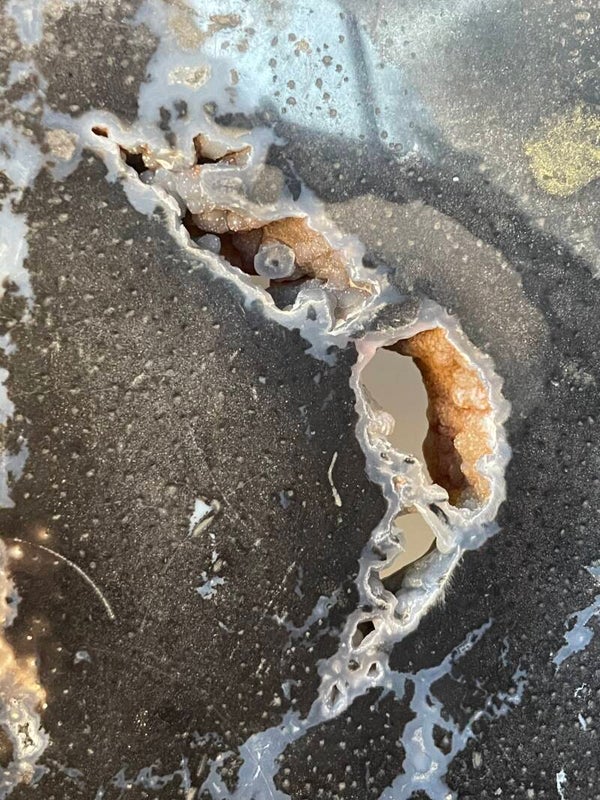 Breng de oerkracht van de natuur in huis met deze indrukwekkende versteend palmwortel schijf. Met een gewicht van maar liefst 4,5 kilo is deze bijzondere schijf een echte blikvanger. De prachtige details van het versteende palmhout, ontstaan door miljoenen jaren van fossilisatie, zijn perfect zichtbaar en maken elk stuk uniek. De schijf is stevig geplaatst op een elegante standaard van metaal en hout, waardoor hij zowel stevig als stijlvol gepresenteerd wordt.