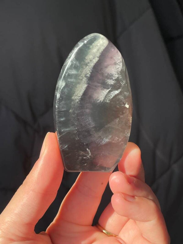 Voeg deze fluoriet met geslepen basis toe aan je collectie en ervaar de combinatie van krachtige aardse energie en mentale helderheid in zijn puurste vorm.