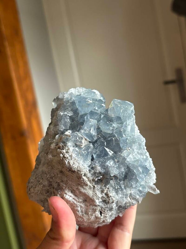 Ruwe celestien is niet alleen een prachtige toevoeging aan je interieur, maar ook een krachtige energetische ondersteuning. Zijn zachte trilling helpt je om spanning los te laten en meer in verbinding te komen met jezelf en het universum.