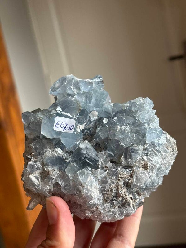 Breng kalmte en spirituele helderheid in je ruimte met een prachtig stuk ruwe celestien. Deze lichtblauwe kristallen staan bekend om hun rustgevende en zuiverende energie. Ruwe celestien heeft een natuurlijke, onbewerkte uitstraling en is bijzonder krachtig in zijn werking.