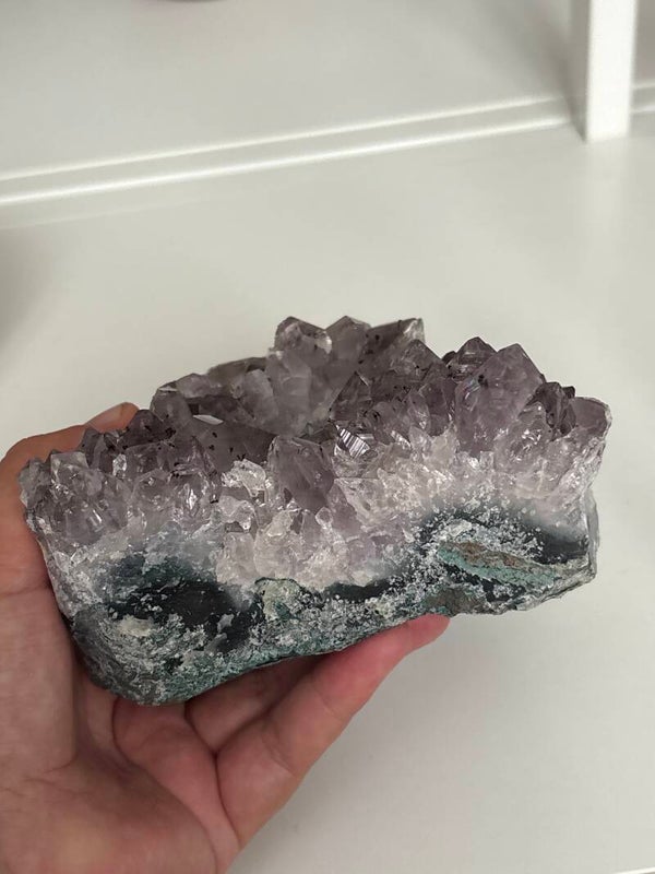 Deze theelichthouder is vervaardigd uit een ruw stuk natuurlijke amethist, een edelsteen die bekendstaat om zijn kalmerende en spirituele eigenschappen. In de edelsteentherapie wordt amethist gebruikt om innerlijke rust, helderheid en spiritueel bewustzijn te bevorderen. Dit maakt de houder niet alleen een sfeervol woonaccessoire, maar ook een krachtige energetische toevoeging aan je interieur.